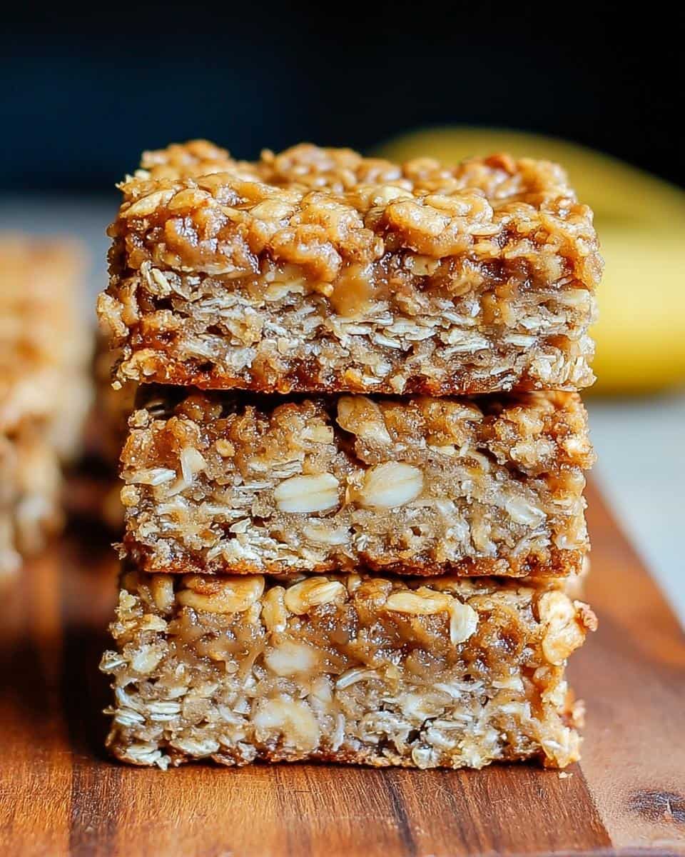 Easy to make banana oatmeal bars, perfect for a healthy snack or breakfast.