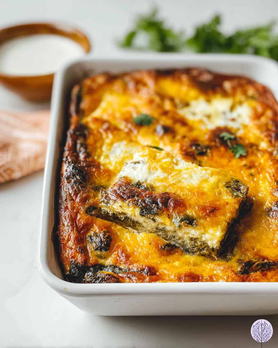 Can I make this Chile Rellenos Casserole ahead of time? Absolutely! You can assemble the whole thing, cover it tightly, and stick it in the fridge for up to 24 hours before baking. You might need to add a few extra minutes to the baking time, just to make sure it’s heated all the way through.
