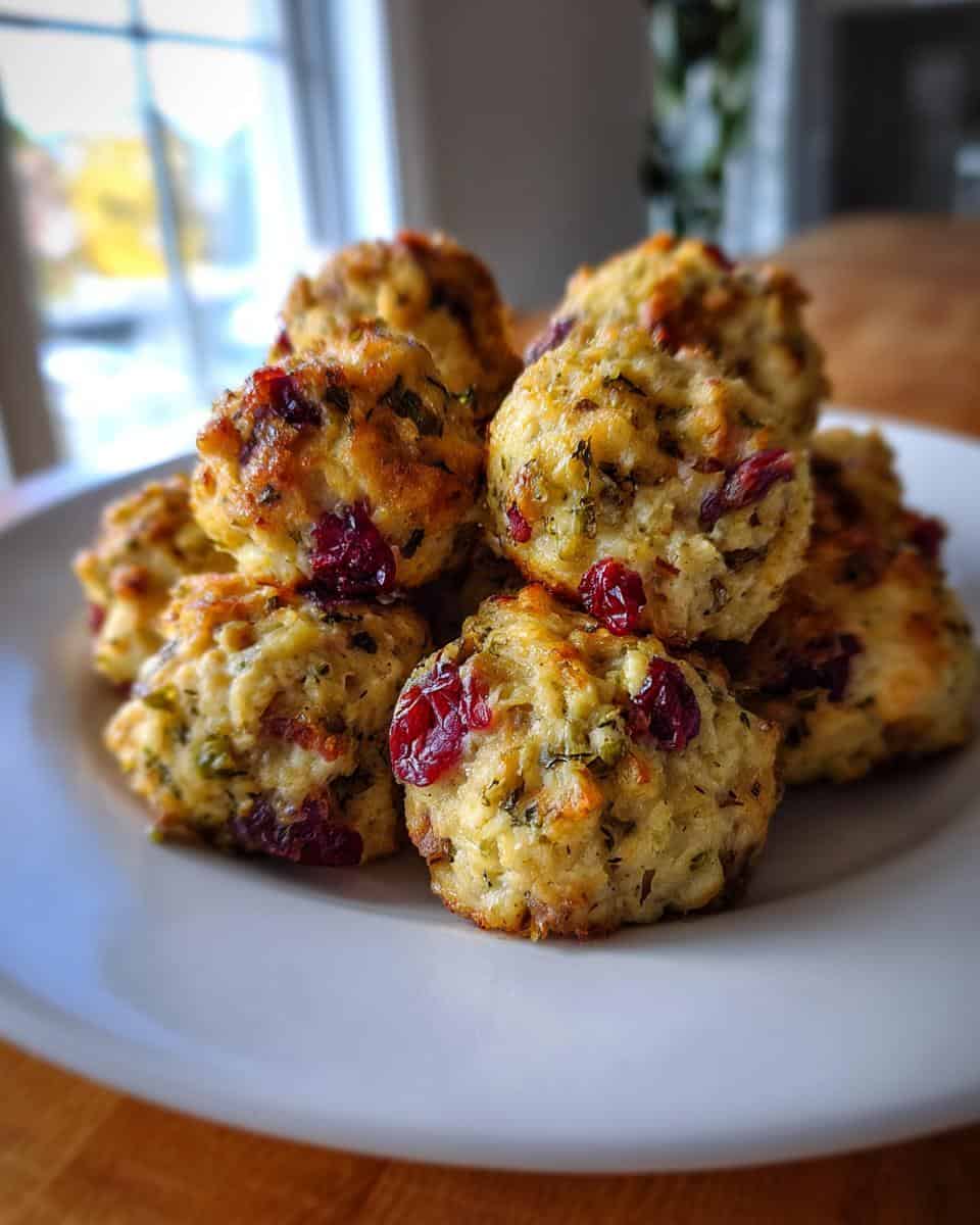Delicious cranberry turkey stuffing balls, perfect for appetizers or a holiday side dish.