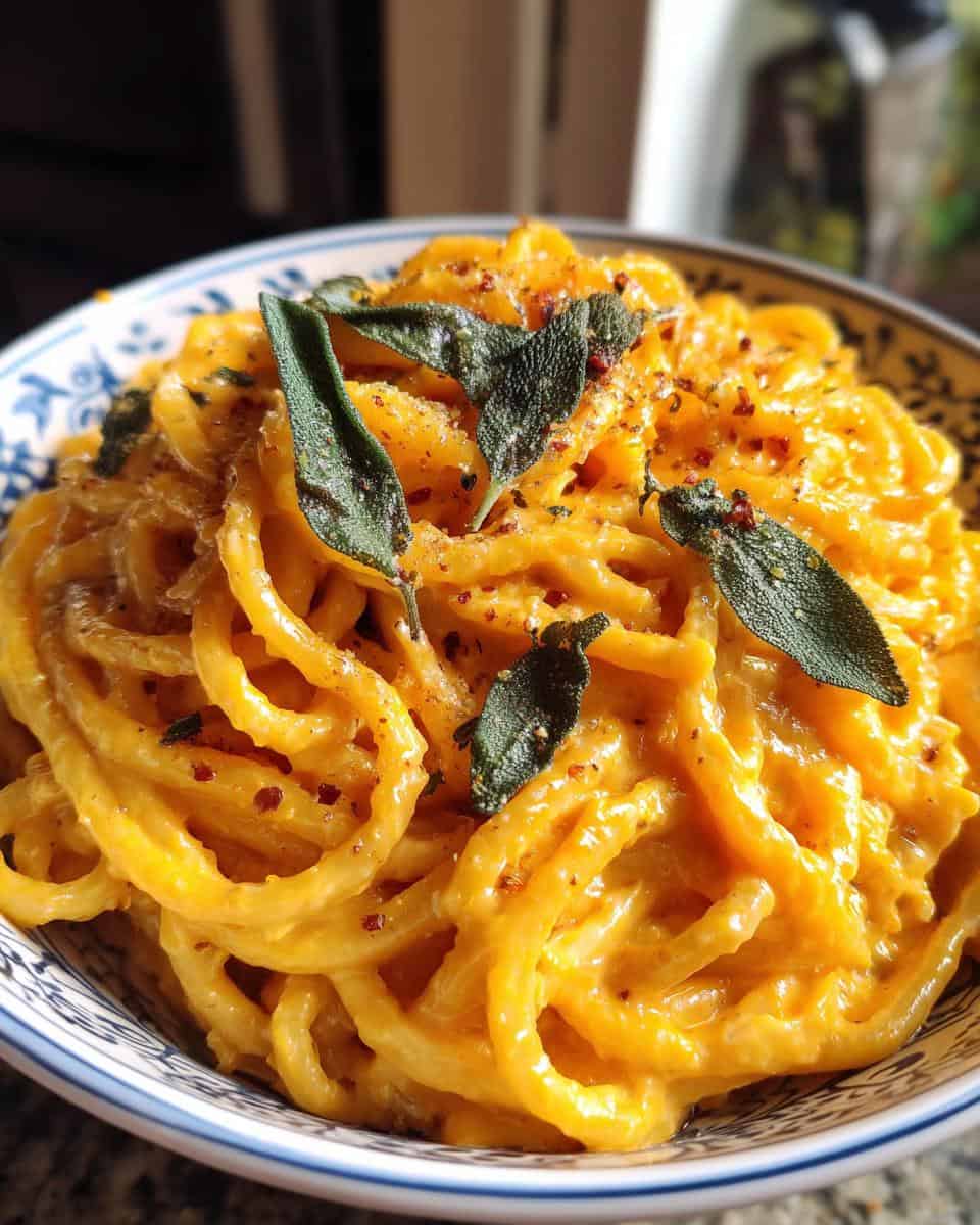 Enjoy creamy pumpkin alfredo pasta, a comforting and flavorful dish.