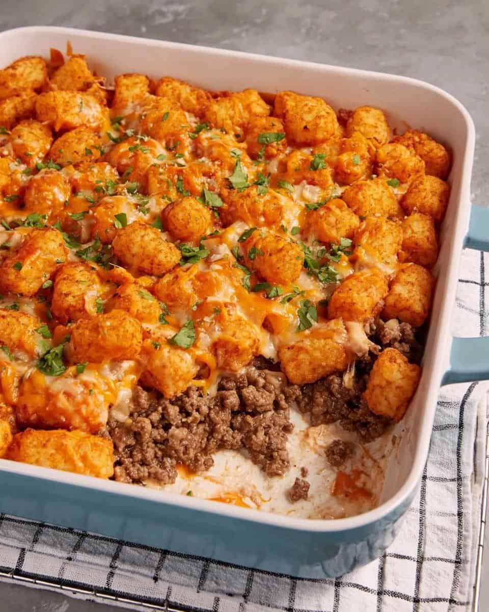 Totally! You can assemble the whole thing – beef, soup, tots, cheese – and keep it covered in the fridge for up to 24 hours. Just add a few extra minutes to the baking time, since it’ll be going in cold. Easy peasy!