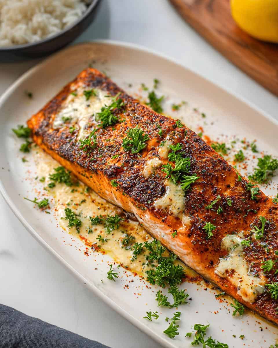 Okay, the garlic butter is where it’s at. It’s rich, savory, and just a little bit tangy from the lemon. It soaks right into the salmon, making it melt-in-your-mouth tender. Seriously, the flavor combo is just *chef’s kiss*.