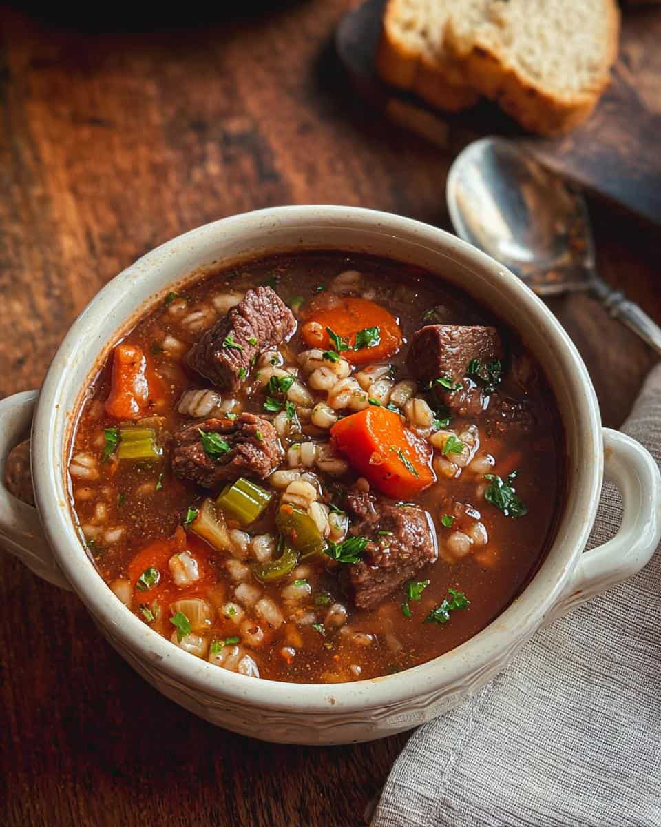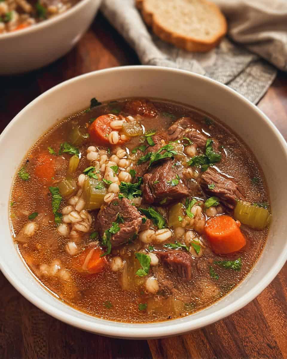 This isn’t some wimpy, watery soup. We’re talking rich beef broth, tender chunks of beef, and chewy barley that’ll stick to your ribs. My favorite part is the deep, savory flavor – so good!