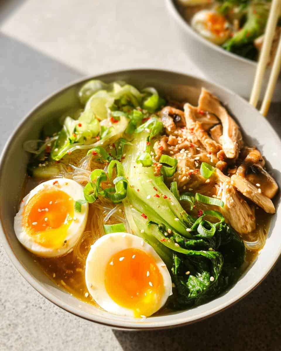 Enjoy a warm and comforting bowl of Keto Ramen Noodle Soup. This low-carb version is quick to prepare and packed with flavor.