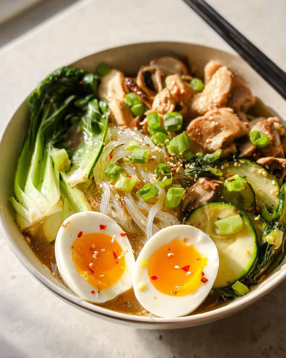 Keto Ramen Noodle Soup Noodles and Vegetables
