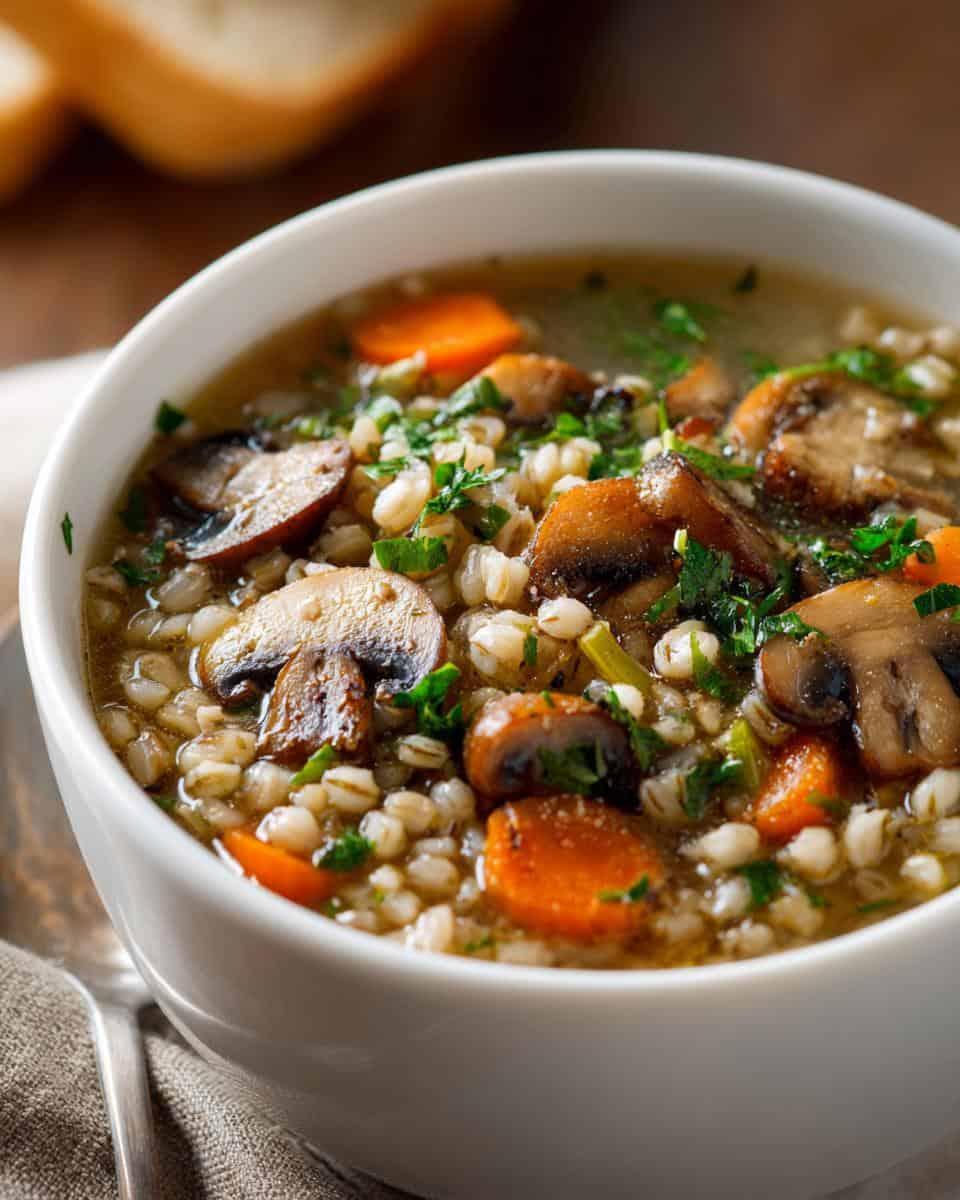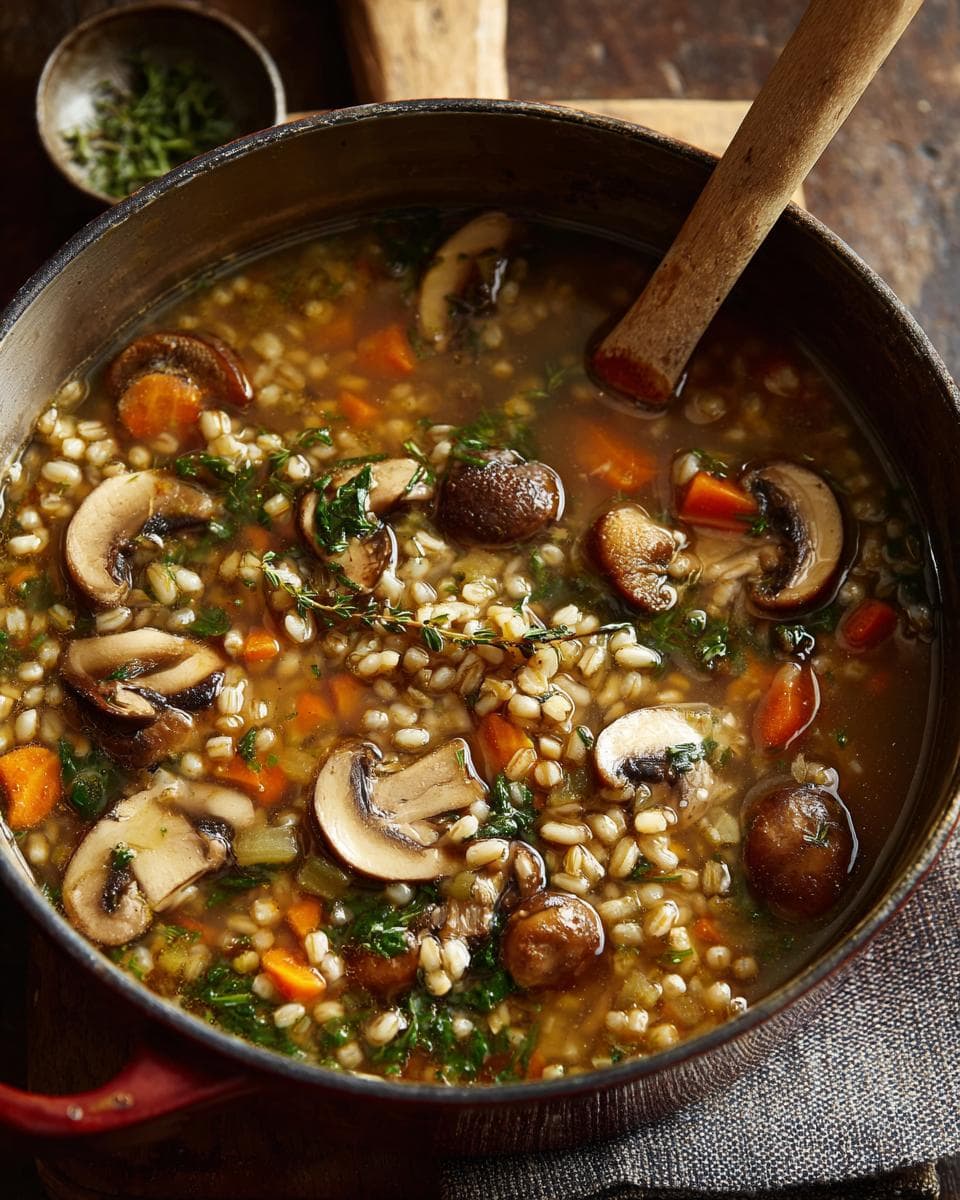 A hearty and flavorful mushroom barley soup perfect for a comforting meal.