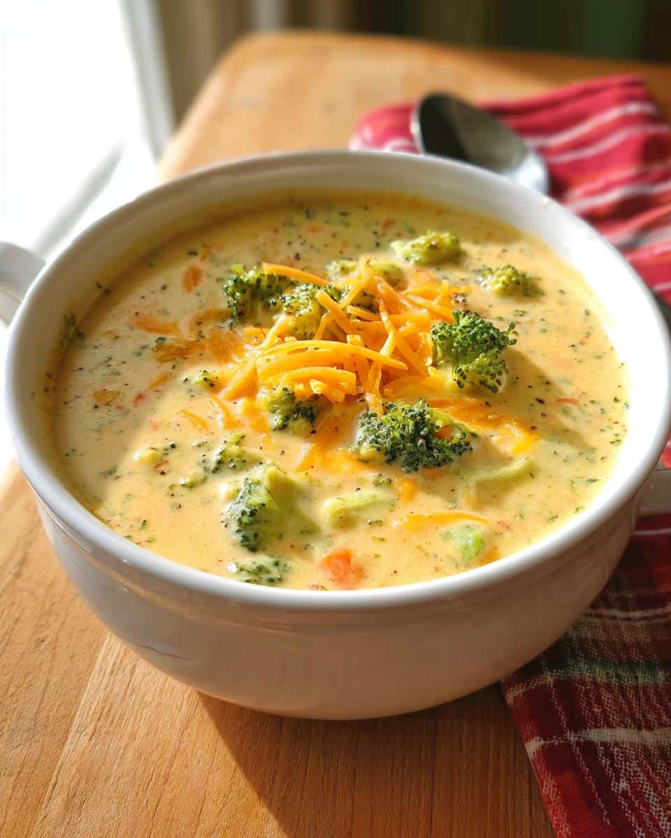 You *can*, but fresh broccoli is really the way to go for that perfect texture and flavor. Frozen broccoli tends to get a little mushy, and it can release extra water into the soup. If you’re in a pinch, though, go for it! Just make sure to thaw it completely and drain off any excess water before adding it to the soup.