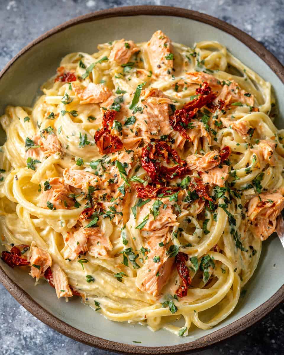 I’ve been making this Salmon Pasta for years, tweaking it here and there until it’s reached pure perfection. Trust me, even if you think you can’t cook, you can nail this. It’s seriously foolproof. Plus, the sun-dried tomatoes add this little burst of sunshine-y flavor that just *elevates* the whole dish. I’ve served this to everyone from picky toddlers to discerning foodies, and it’s always a hit!