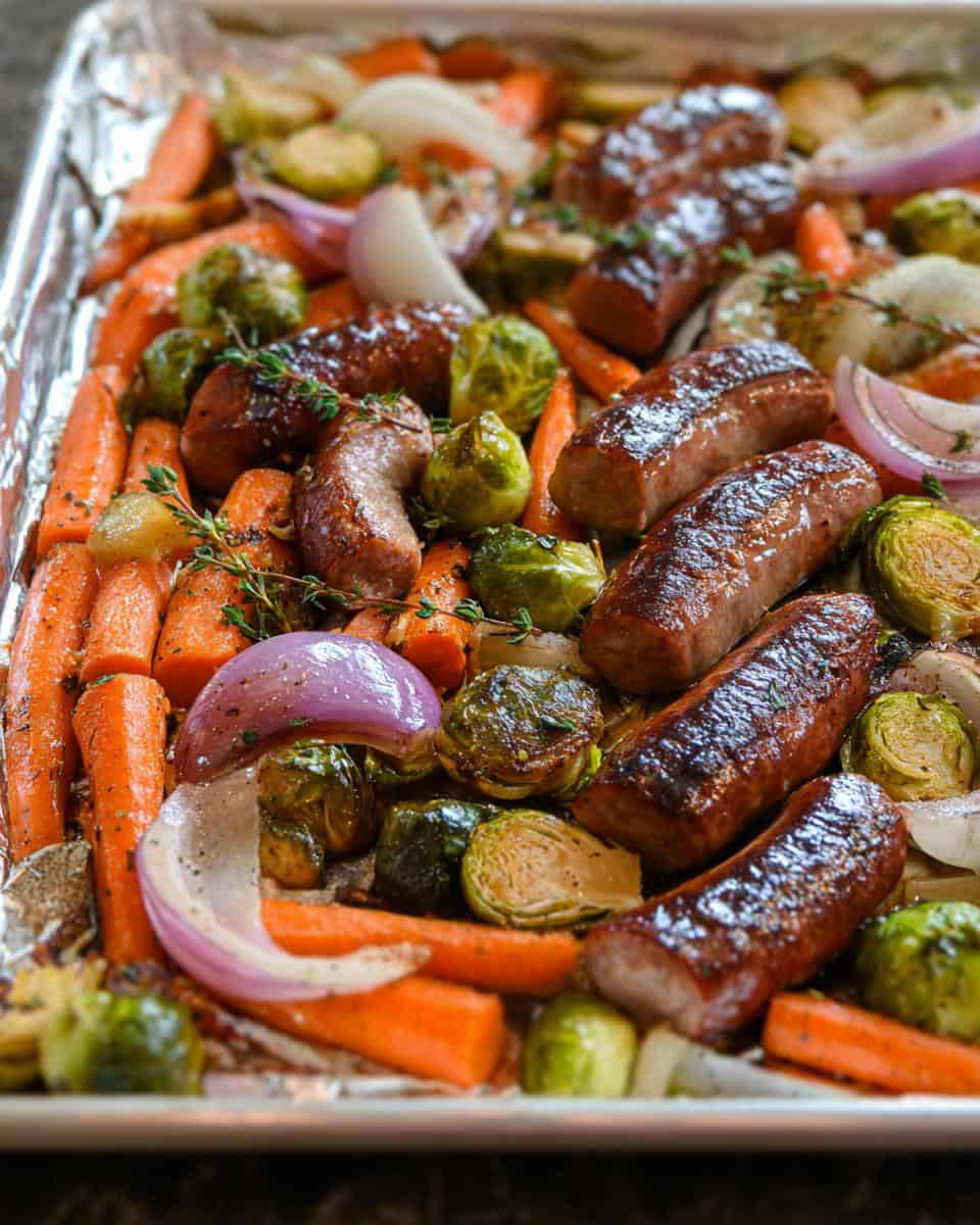Easy sheet pan sausage and veggies recipe for a quick and healthy meal.