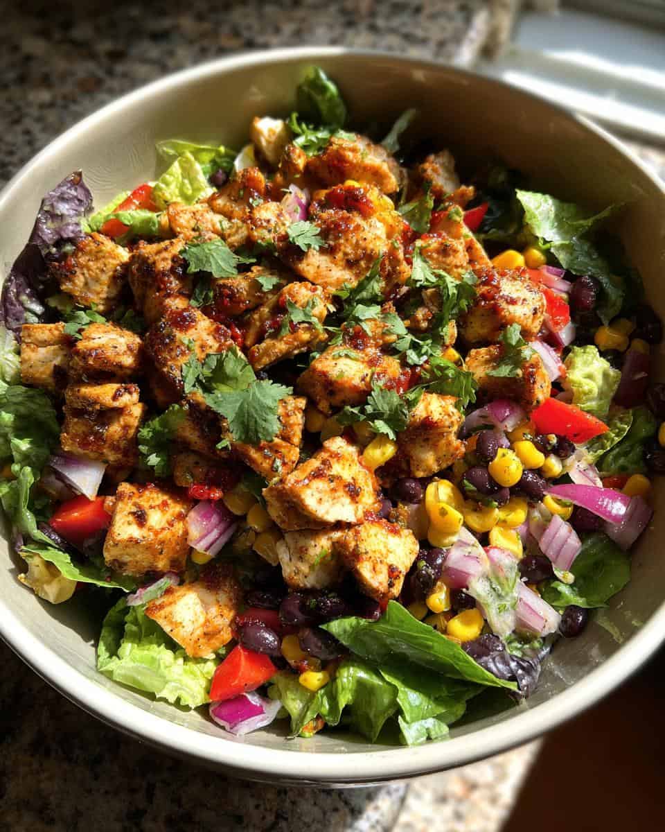 A flavorful and healthy salad featuring chicken and Southwestern-inspired ingredients.