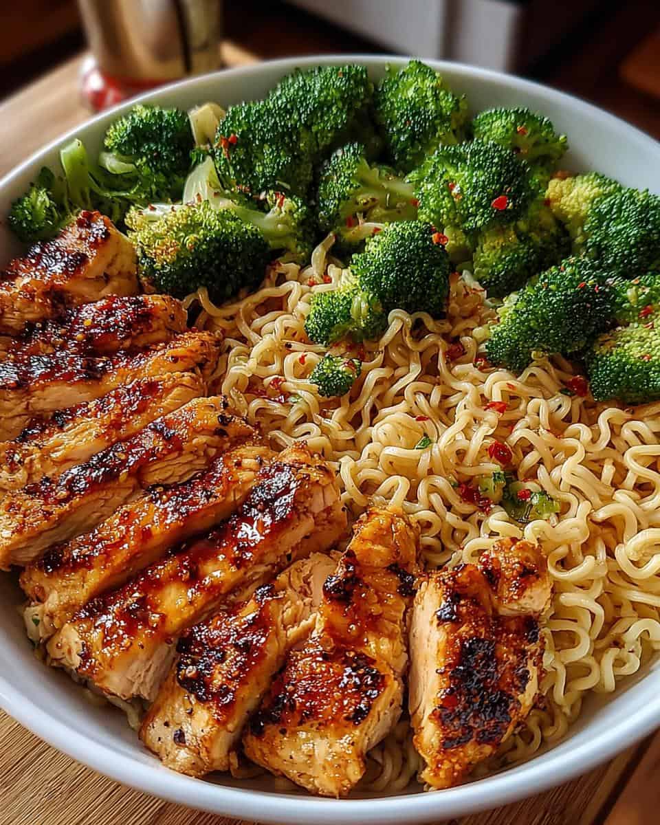 Enjoy Your Spicy Garlic Chicken and Broccoli Noodle Bowls